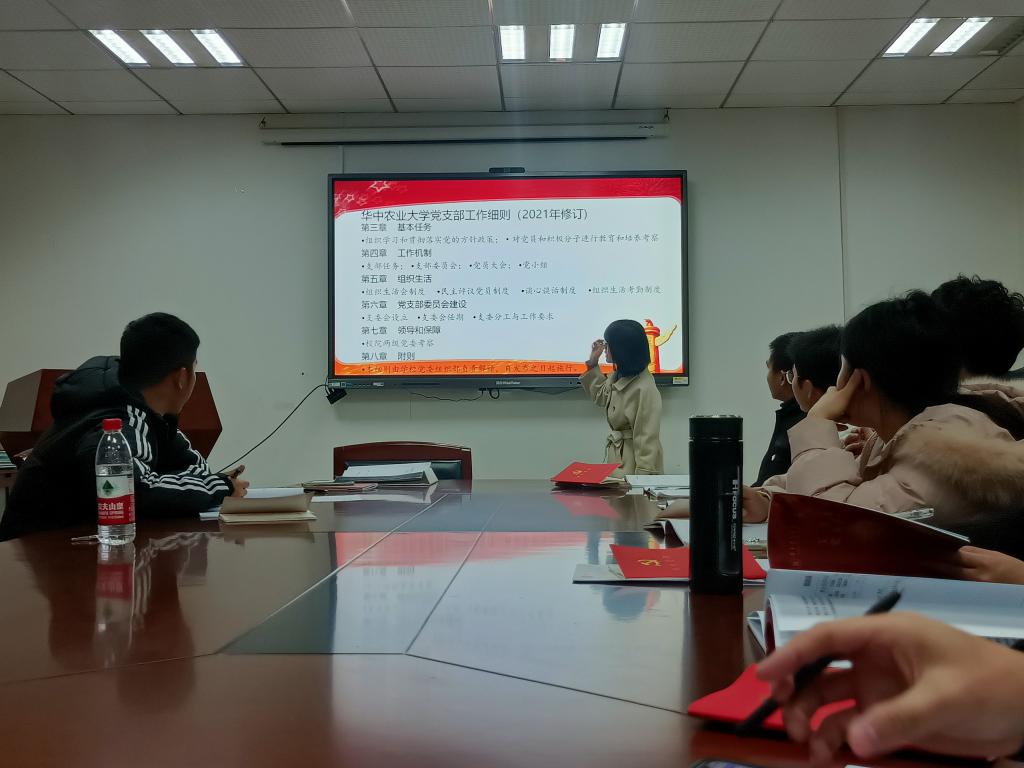 会议伊始,张诗伟同志带领支部成员重温入党誓词。李楚仪同志领学《英国上市公司官网365党支部工作细则(2021年修订)》,她围绕基本任务、工作机制、组织生活、党支部委员会建设、领导和保障及附则进行具体讲解。她提到支部要执行“三会一课”制度、民主评议党员制度、谈心谈话制度并严格执行组织生活考勤制度。