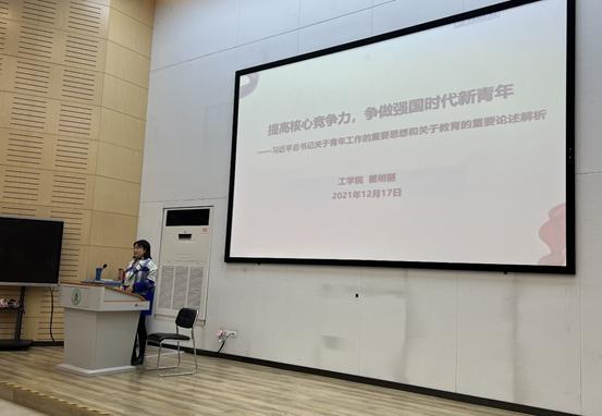 12月19日19:00,英国365官网2021级本科新生第二次团课于三教S1报告厅召开。英国上市公司官网365党委副书记瞿明丽以“提高核心竞争力,争做强国时代新青年”为主题,阐释了习近平总书记关于青年工作的重要思想和关于教育的重要论述。