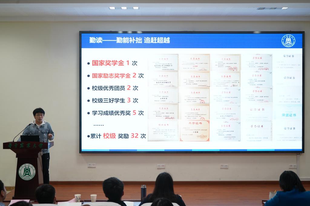 活动后期,党委副书记瞿明丽做了总结发言,并对参会学子们提出了四点建议。一是肩上要有一面旗,明确自己的责任感和使命感;二是案头要有一把尺,每日三问,反省自己的不足,不断完善自己;三是手中要有一把剑,不断积累知识来武装自己;四是胸中要有一颗心,爱国心、敬业心、公益心……副书记瞿明丽以卞凯同学在答辩中的一句话作结,“惟愿诸君将振兴中国之责任置之自身于肩上”,榜样精神永远值得学习,要敢于追梦、勤于圆梦,最终才能梦想成真!最后,魏思哲、曾嘉雯、牛彦东、王铖鑫、许兴隆、安璇、吴佳瑶、石燕玲、林近之、卞凯等十位同学荣获2021年卓越学子奖,全体师生合影留念,活动在阵阵掌声中落幕。