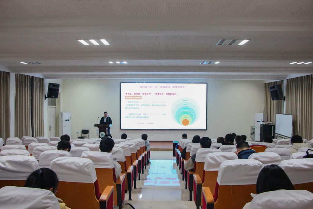 12月2日晚,英国365官网在工程楼A111报告厅举办“学生领导力提升计划”系列培训,2020级硕士研究生王庆鲁分享了学生骨干成长与工作经验。