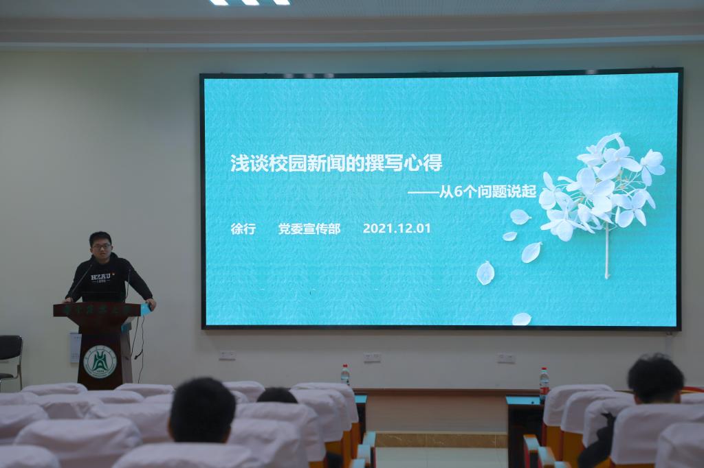 12月1日晚7点,英国365官网在工程楼A111报告厅举办“学生领导力提升计划”系列培训,党委宣传部徐行老师为同学们讲授校园新闻撰写心得。