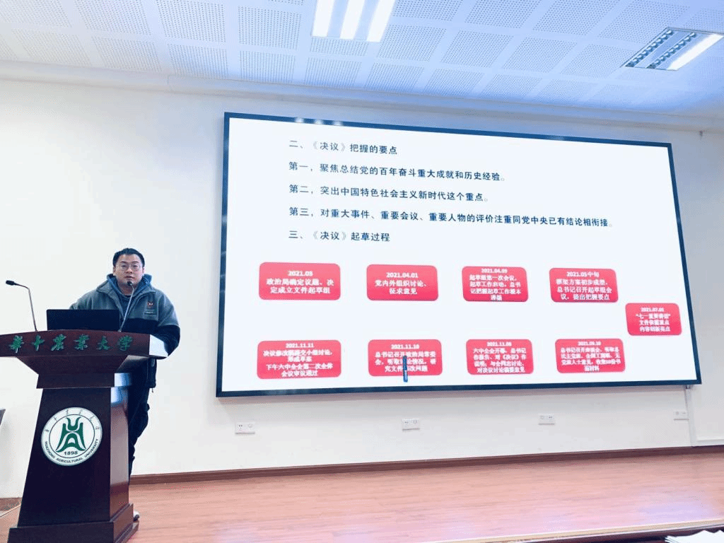 张清洪同志表示,百年来我们党一共诞生过三个重要决议,这说明我们党善于总结经验,《中共中央关于党的百年奋斗重大成就和历史经验的决议》诞生在党和人民成功实现第一个百年奋斗目标,正在向着全面建成社会主义现代化强国的第二个百年奋斗目标迈进的重要关头,具有重要历史意义。
