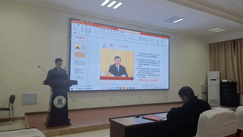 会议开始,张清洪同志做简单的会议介绍带领党员重温入党誓词。接着,康启新同志领学十九届六中全会精神。他通过两个视频回顾党在百年来的伟大成就,同时让大家看到了党在下个百年奋斗历程上要踏实做好答卷人的伟大决心。随后,王宏波同志领学习近平总书记在纪念辛亥革命110周年大会上的讲话精神,他从会议金句、背景、主要内容及意义四个方面诠释会议精神,并指出中国乃诸君之中国,惟愿诸君将振兴中国之责任,置之于自身之肩上。最后,程健同志领学如何理解政治建设是党的根本性建设时运用张明杰的案例让大家明白党的政治建设的重要性,并指出政治问题,任何时候都是根本性的大问题,全面从严治党,首先要注重政治上的要求。