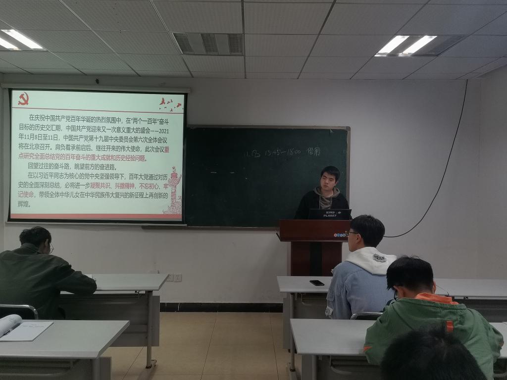 活动开始,刘瑜明同志带领全体党员重温入党誓词,田乾龙同志领学十九届六中全会精神,他谈到,在庆祝中国共产党百年华诞的热烈氛围中,在“两个一百年”奋斗目标的历史交汇期,党迎来又一次意义重大的盛会——中国共产党第十九届中央委员会第六次全体会议,会议肩负着承前启后、继往开来的伟大使命,重点研究全面总结党的百年奋斗重大成就和历史经验问题。通过回望过往的奋斗路,眺望前方的奋进路。在以习近平同志为核心的党中央坚强领导下,百年大党通过对历史的全面深刻总结,必将进一步凝聚共识、抖擞精神,不忘初心、牢记使命,带领全体中华儿女在中华民族伟大复兴的新征程上再创新的辉煌。严煜同志学习后深有感触,他分享到,党的十九届六中全会在两个百年奋斗目标的交汇点,在党全新的历史重要关头,全面总结党的历史经验,加强党的建设,为新时代的奋斗提供理论指导,并对接下来的发展任务做出战略部署,规划出长远目标,具有重要的历史意义。