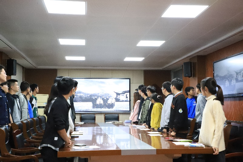 会议在庄严的校歌声中拉开序幕,随后研究生辅导员王贤波宣读了任免通知。