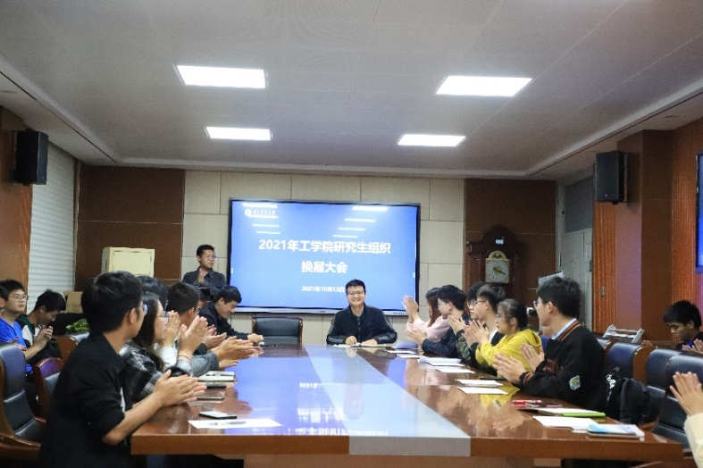 10月13日晚,英国365官网研究生组织换届大会于工程楼A201举行。研究生辅导员王贤波、新老研究生骨干60余人参加会议。