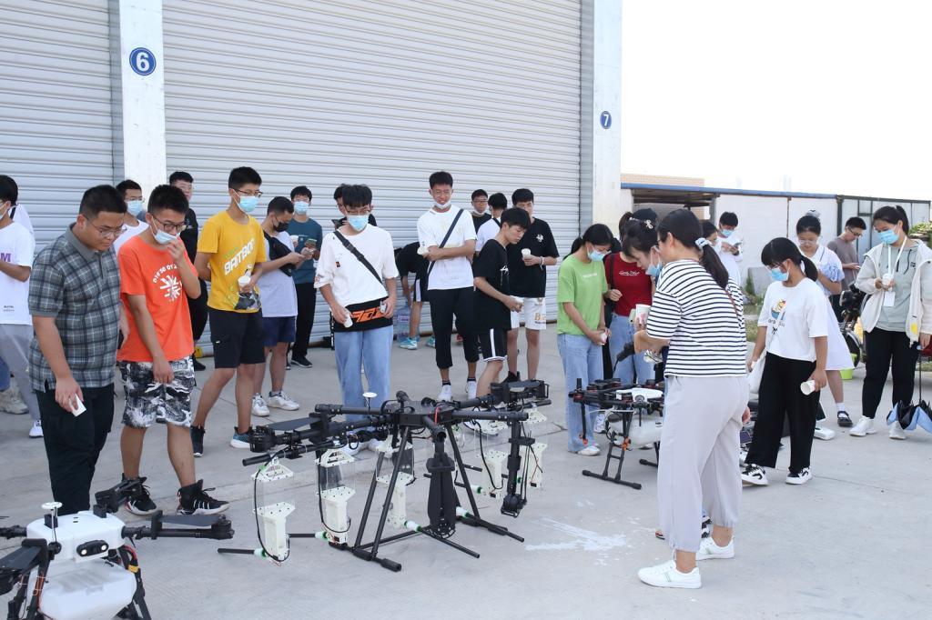 整地、播种、田间管理,各式农机一字排开;上升、滑翔、盘旋,无人机展科技之美。发动机轰鸣声、螺旋桨飞转声、人群惊呼声,与现代农机和无人机的“零距离”接触,工科驾驶基地成为了新生认识现代农业的“第一站”。