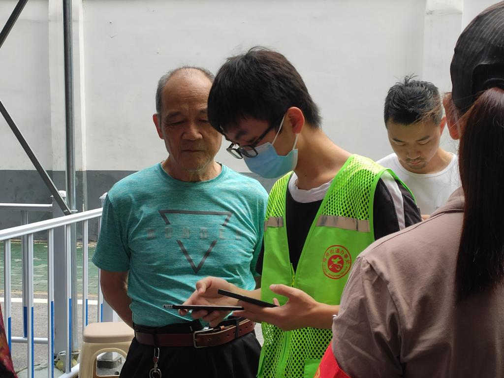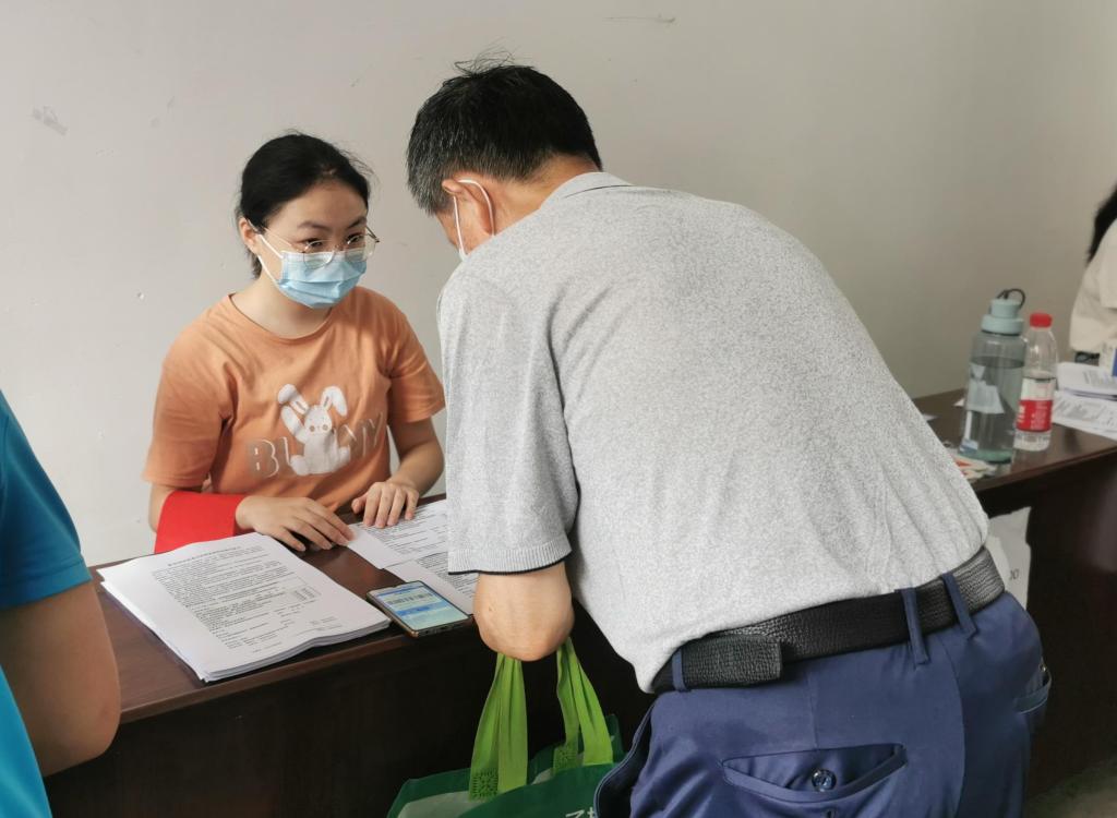 “您好,请您打开手机扫码登记”“请大家保持一米以上距离”“请到这边填表,然后等待叫号。”实践团的工作内容主要是引导建档、协助线下线上登记、配合接种以及留观等。由于接种人群多为老人,对智能手机的使用并不熟练,志愿者们便耐心指导,遇到没有智能手机的老人,他们便用自己的手机帮其进行注册。疫苗接种知情书是判断是否符合接种条件的重要等方式,志愿者们耐心引导老人们阅读疫苗接种知情书,仔细询问老人的身体状况,遇到年纪稍微大一点的老人,志愿者们会将知情书上的内容逐字逐句的读给老人听,帮助他们建立疫苗接种档案。