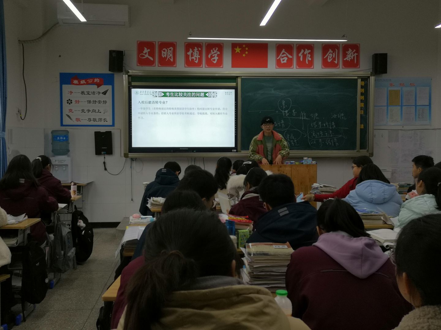 团队宣讲主要针对学校实力、招生政策以及环境等进行介绍,同时改变学生对农业院校的传统观念,加深对华农的认识,增大学校知名度,加大学校招生宣传力度,引进更多的母校优秀人才。团队三人均与学弟、学妹交流分享了自己的专业、大学生活故事、经验以及收获,解疑答惑,激励他们对大学的憧憬,解决未入大学前的迷茫问题,帮助他们度过一个充实而又有意义的大学生活。