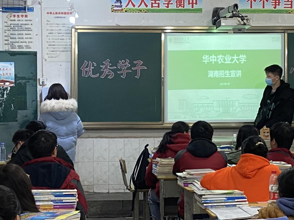 在活动初期,团队便积极与高中学校老师沟通,争取到了这宝贵的宣讲机会。考虑到新高考的改革,他们特意挑选了一个将生物作为高考科目之一的班级,希望学弟学妹们能够对于华农有更加全面的了解。宣讲由生动有趣的招生视频开始,成功活跃气氛,激起了学弟学妹对的深厚兴趣。团队配合PPT对的相关招生事宜进行了讲解,让高三学子们对如何报考以及对的特色与实力有了更加深入的了解。在最后的问答环节,队员们细心倾听学弟学妹们目前的学业上或者是心理上所遇到的困惑和难题,认真地为学弟学妹们答疑解惑,希望他们明确自己前进的方向,在高三最后的冲刺中能够乘风破浪抵达成功的彼岸。