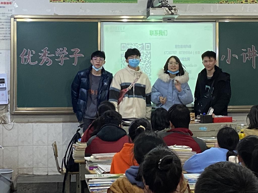 1月30日,机械2008半杨颖泉及其团队响应优秀学子母校回访号召,为达成宣传的同时为高三学子们高考加油助力两大目标,前往湖南省蓝山二中进行宣讲。
