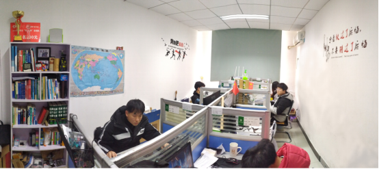 B407工作室负责人邓志勇用工作室的书柜一角来描绘他们工作室积极拼搏的态度和认真学习的精神。