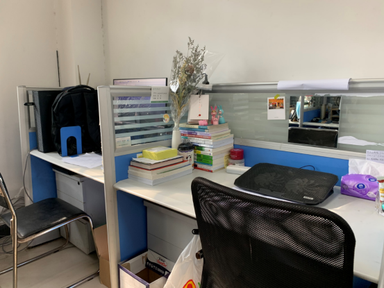 B409工作室负责人李玉祥用整齐的工位,洁净的图书角显示出他们工作室的主题——整洁。