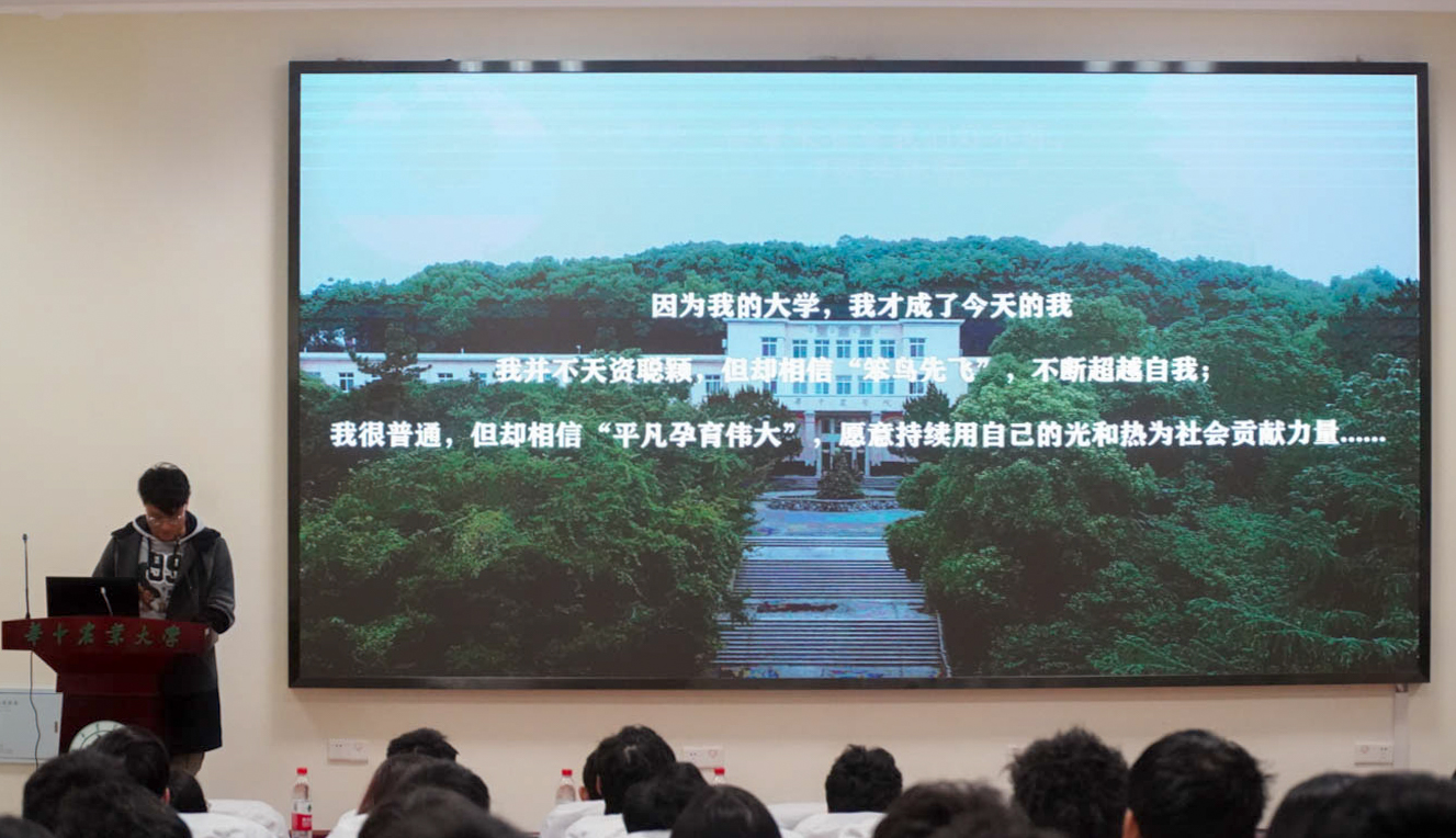 第一位分享的是来自英国365官网农业机械化及其自动化1703班的王镜朝,从三年来当“大学生标兵”观众到真正成为“大学生标兵”获得者,他用实际行动实现了自己的目标。在这三年时间内,王镜朝努力学习,踏实科研,热心学生工作,积极参加公益活动,从各方面提升自己,收获满满。“回首往昔,因为我的大学,我才成为今天的我,他教会我要做一个立身于德、立德于诚、立言于真、立功于实,勇立时代潮头的华农人。我并不天资聪颖,但却坚信‘笨鸟先飞’,以抓铁有痕,踏石留印的决心不断超越自我;我很平凡,但却坚信“平凡孕育伟大”,愿意持续用自己的光和热为社会贡献力量!”王镜朝最后总结的话语表达出对学校的感恩和对未来的决心,带着梦想,向着未来,勇往直前。