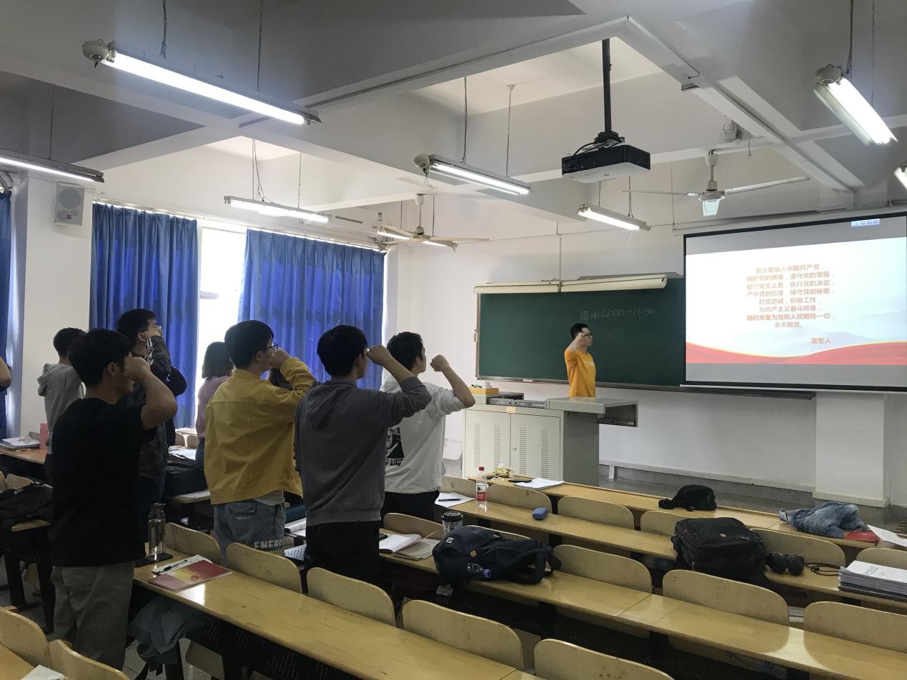 首先,全体党员重温入党誓词。肖逸同志带领大家学习了“四史”,分析了四史的重要性,鼓励党支部成员深入学习四史、在实践中守初心、在社会建设中担起使命。