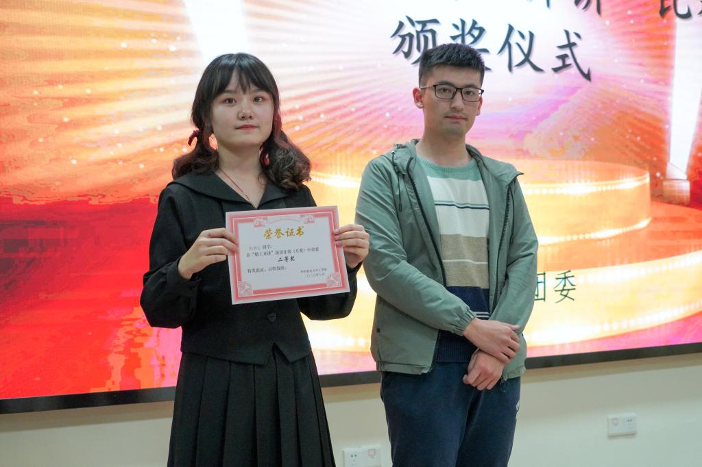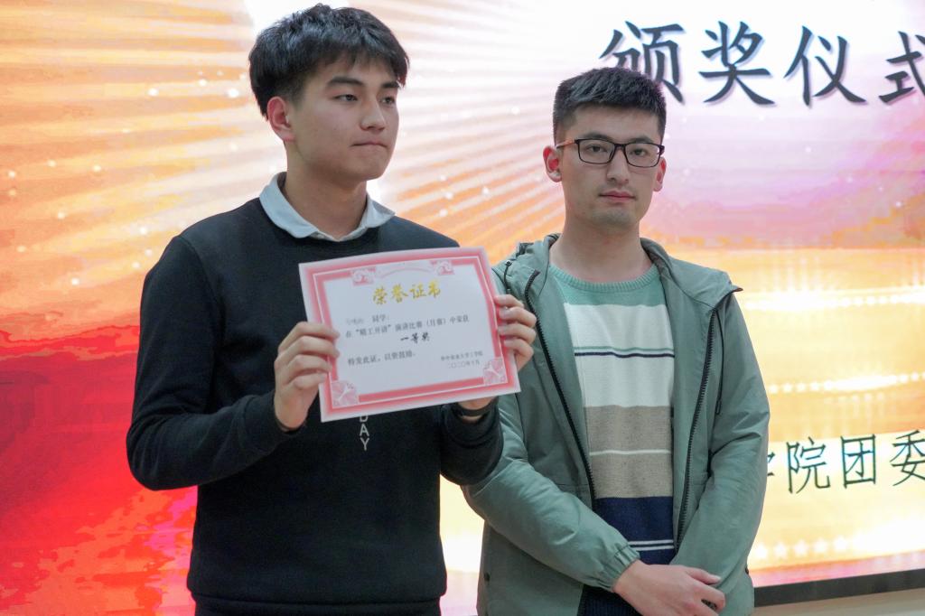 首先为大家带来演讲的是来自机械1905班的徐菲同学,她着重介绍了新中国史、社会主义发展史和改革开放史,并将其分为9个阶段进行了自己看法的阐述,并感慨道:“要生存发展必须自强不负明日。”随后,机械1801班熊成刚同学就生活方式的改变,以改革开放为例,发表了自己对于四史的看法,并提出“以四史武装我们的头脑”。来自农工2005班的张万金同学,介绍了董必武的三则故事,并发表了自己的感悟和对四史的美好憧憬。机械1902班的程派同学则通过介绍党史和举例汶川地震和新冠肺炎疫情,突出党史对于建设国家的重要性。来自农工1903班的赵梓含同学,从四方面充分展示了四史对共产党发展、新中国建设的必要性,也强调了其在世界社会发展史中起到的作用。紧接着,农工2003班的谢榆桐同学,通过介绍党的伟大转折,提出应积极继承四史留下的精神财富,建设一个更好的社会传递薪火。最后,来自机械1905班的万啸扬同学先具体介绍了四史的概念,随后从疫情、国家、你我、学校的四方面从不同角度分析了四史并提出了自己的憧憬。