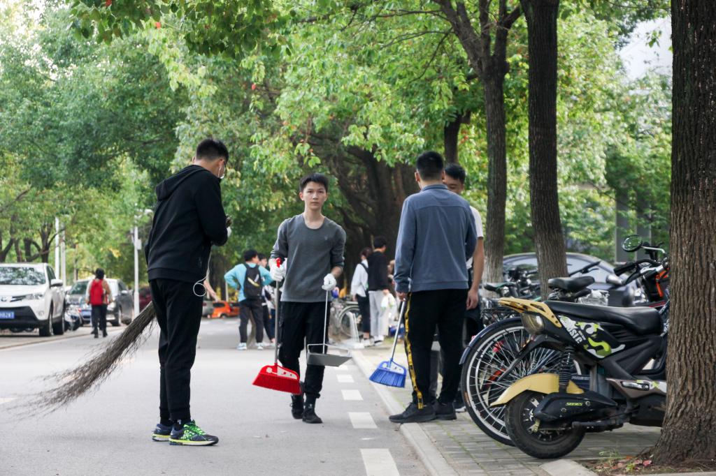 活动伊始,同学们有序领取扫帚、夹子、簸箕等清扫工具,合理分工,相互协作,对道路上的落叶、角落里的垃圾、栏杆上的废弃物进行了逐一清理,不错过每一个角落,不放过每一块垃圾,大家齐心协力,将责任区域打扫的整洁一新。