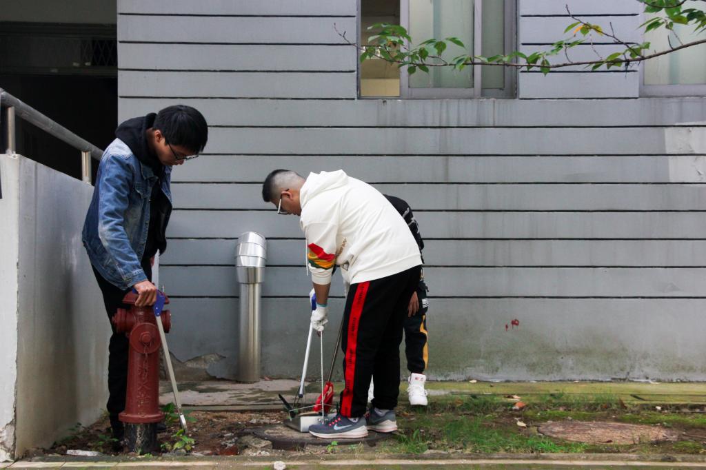10月8日下午,学院开展了校园环境卫生义务劳动,辅导员老师与学生一起对第三教学楼附近区域进行清扫、垃圾捡拾和废弃物清除等工作。