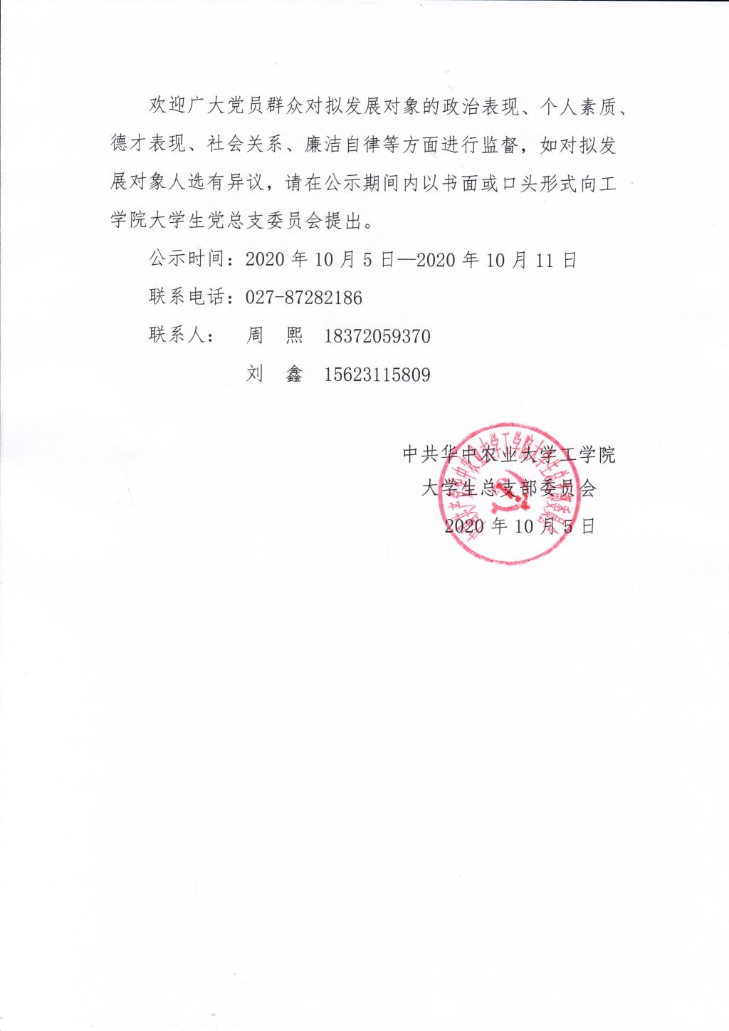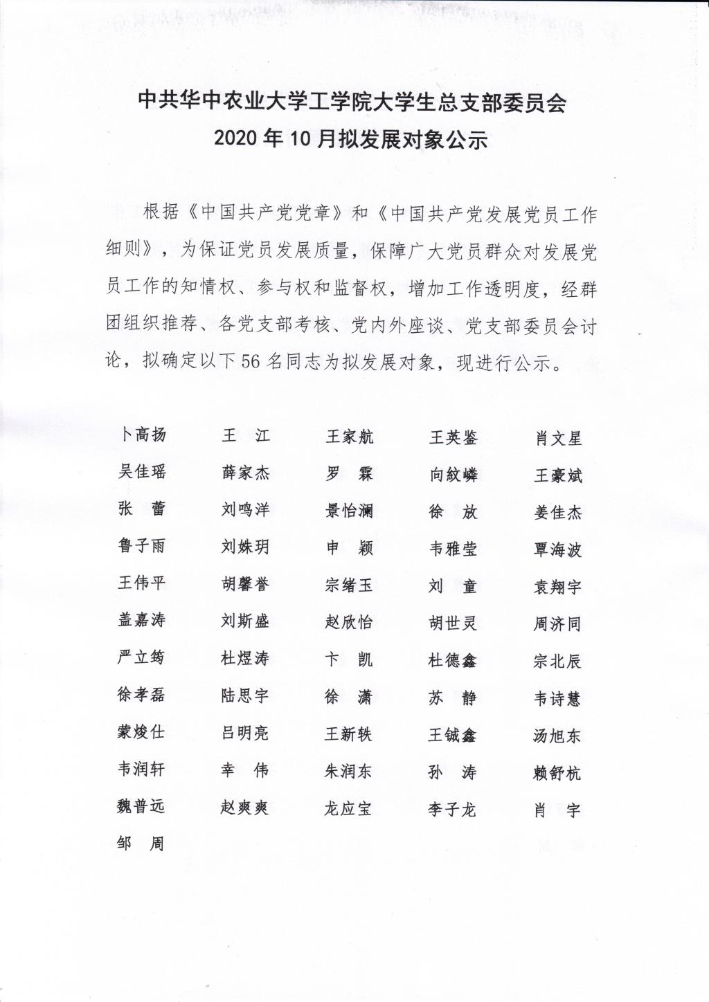 中共英国上市公司官网365大学生总支部委员会2020年10月拟发展对象公示