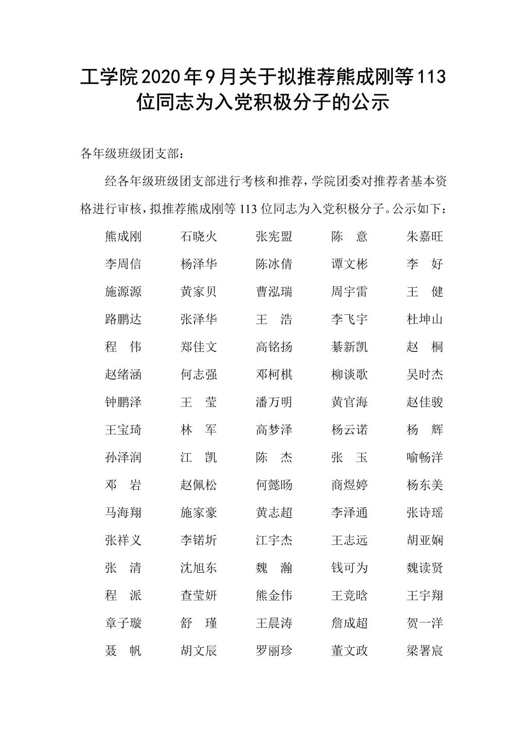 英国上市公司官网3652020年9月关于拟推荐熊成刚等113位同志为入党积极分子的公示