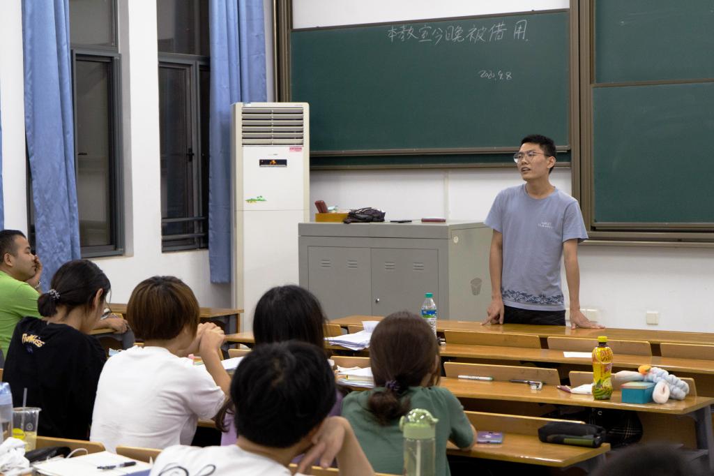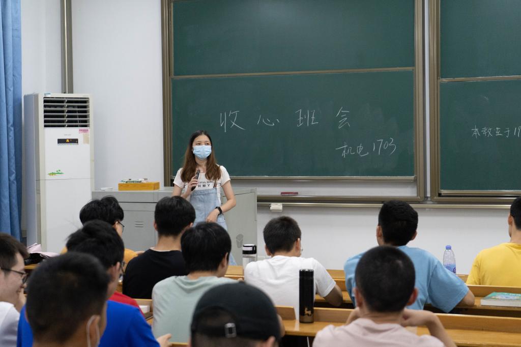 徐迪红老师要求同学们从长达8个月在家学习懒散的状态中恢复过来,鼓舞同学们展望大二生活,不能再像大一一样懒散,不论怎样学生的首要任务都是学习。随后,学班刘任宇结合自己的经历从挂科影响、就业、保研等方面系统全面地给向同学们介绍了加强学习的重要性。农工1901班主任徐勤超老师希望同学们规划好自己的发展方向,无论是保研、考研、竞赛还是学生工作,在适合自己的路上努力就一定有回报。机械类1802班主任潘海兵老师看到阔别许久的同学们,欣喜不已。随后他就新学期大学生生活和在场的同学们进行交流。他对学生提出几点希望和建议:一是同学们要学会感恩,心存善良;二是要充分利用大学资源,努力提升自己;三是要功夫下在平时,注重积累;四是培养浓郁的人文情怀,凝聚精神气质。