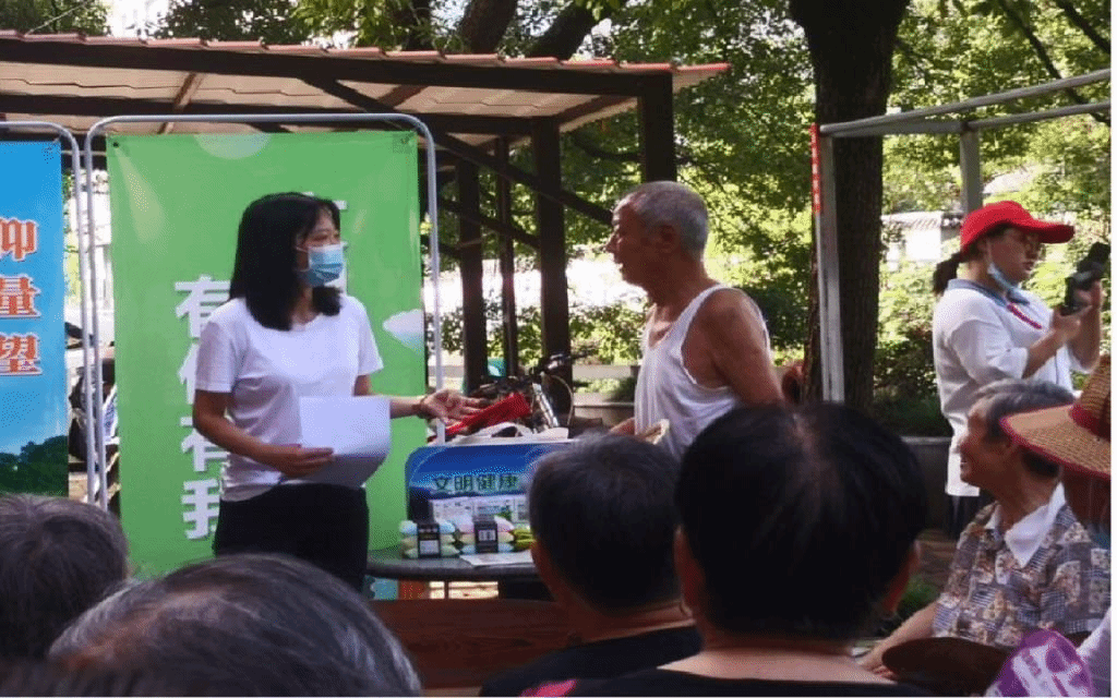除了疫情期间必要的宣传与防护,随着全国文明城市创建活动的临近,为保障创城“四连冠”,工作人员也在控制人员不聚集的原则下,组织了多次宣传活动。活动面向的主要受众是老人们。工作人员组织老人们一同在公园宣讲了创建文明城市的重要性和个人举措。活动过程中,为提高老人们参与活动的积极性,也在保持社交距离的前提下表演了活动,分发一些小礼品。
