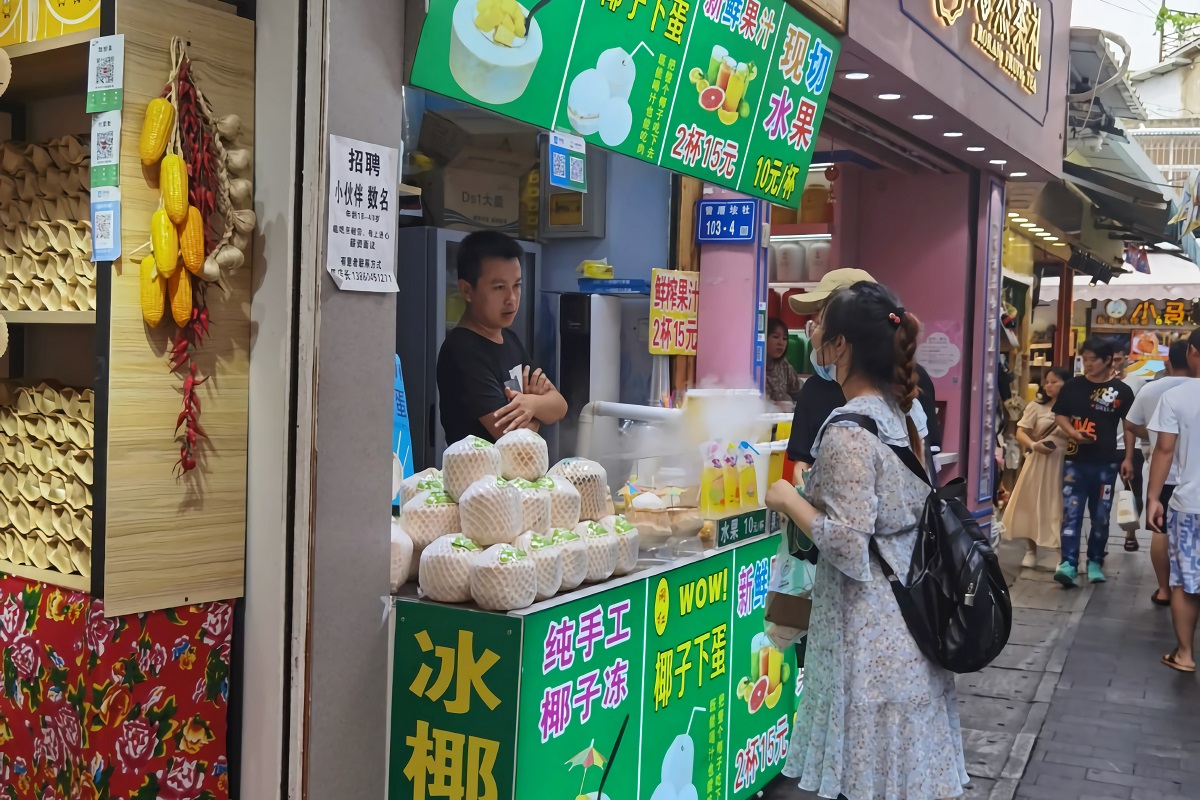 在福州三坊七巷、厦门鼓浪屿这两个景区,能观察到许多店铺关门的现象,造成这一现象的最主要原因即是以客流主导的销售盈利与以房租主导的营业成本之间的冲突。在走访中,最值得注意的莫过于一些通过不同手段或策略试图在疫情中生存下来的店家:以特产为主的杂货干货铺前,可以听到店员向路边和对店里人们的吆喝:“免费试吃”“满××包邮”“买×送×”。