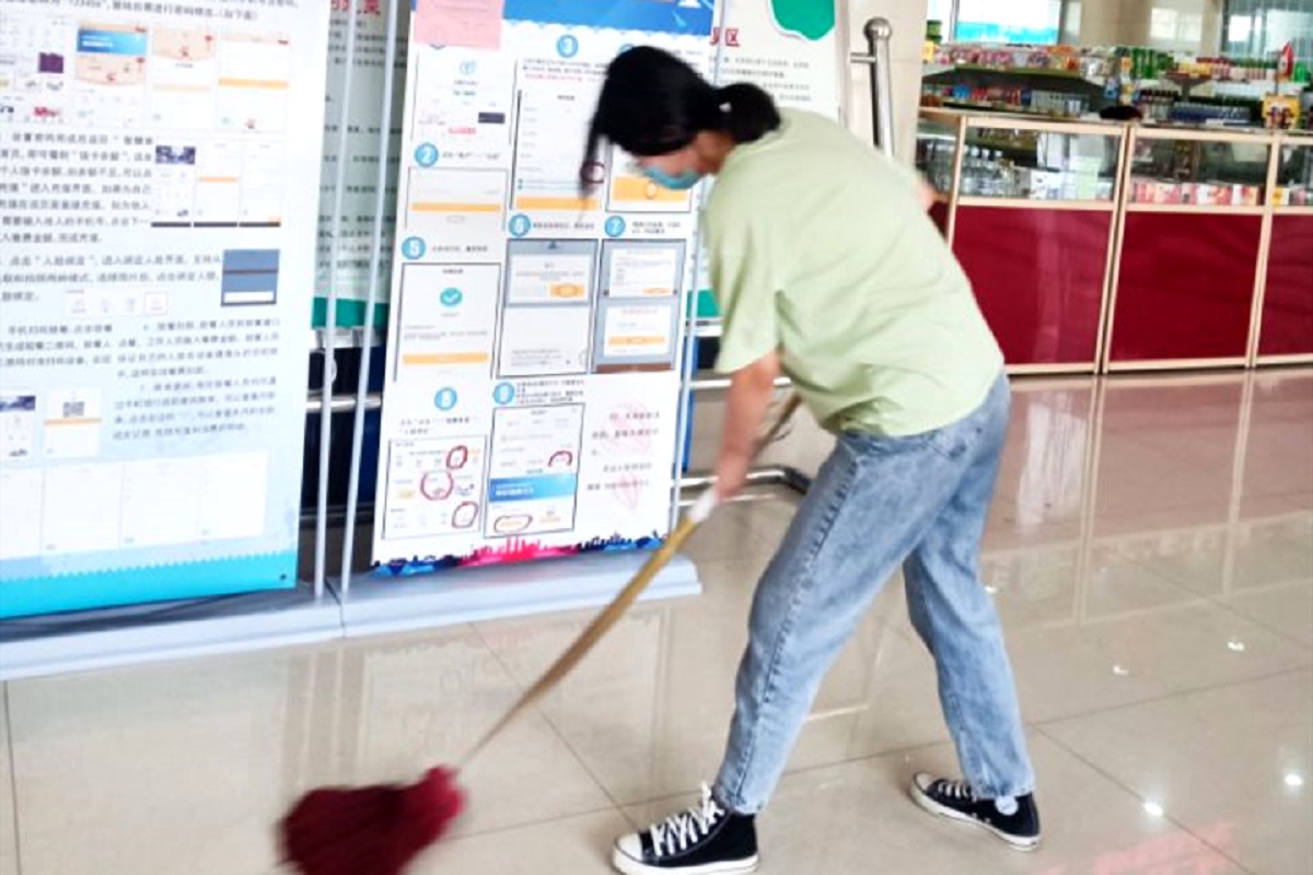 在李村煤矿实践的这几天里,实践团志愿者和森宇了解到,疫情期间,煤矿门口都设有专门员工测量体温,体温高的进行实名登记且不予许进入。餐厅则不留客,不接受在餐厅吃饭,实行打饭回家的规定。现在仍在门口进行电子宣传,播报疫情相关电视新闻,一桌两人等举措。实践团志愿者也参与了餐厅员工内部测体温、喷洒消毒水等过程,这些措施为餐厅就餐的员工提供了健康安全的就餐环境。此外,志愿者还来到了李村煤矿的员工餐厅,认真学习,参与防疫。背起重重的水壶,将喷头仔细喷向餐厅的每个角落;拿着两色抹布,有条不紊的擦拭桌面;弯下直直的腰,握着拖布将地面擦得锃亮。在复工复产的大环境下,每个人都坚持在岗,忠于职守,但愿我们的生活早日步入正轨。