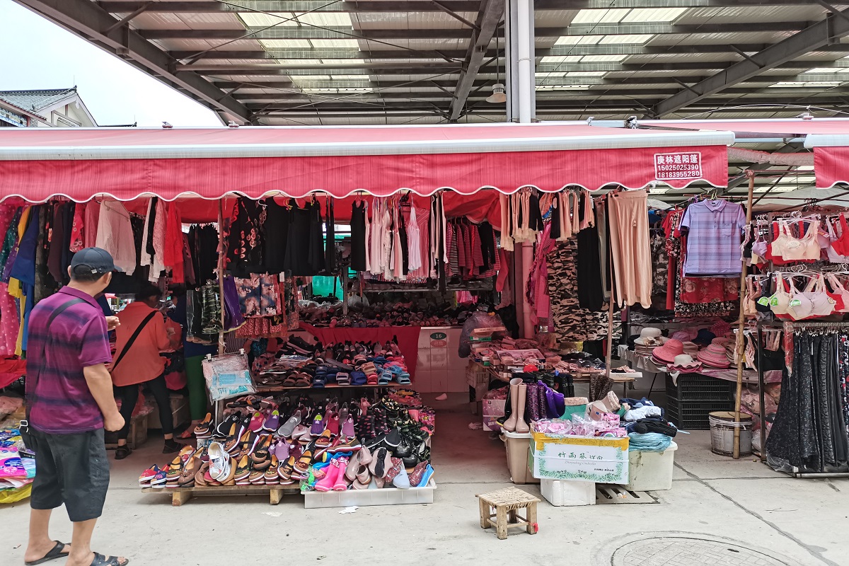 罗霞同学冒雨来到了四川双龙村的农贸市场调研。作为几个村子之间最大的农贸市场,这里的蔬菜和肉类种类更加丰富,可以看的许多人都将这里作为采购食品的首选,但最近因为天气原因,也发现许多商家都无法出摊。