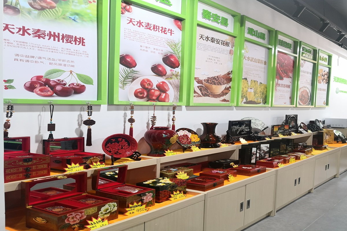 随后,记者又来到了位于河北区海河东路的天津消费扶贫天水中心馆。虽然记者去的时候是白天,但是可以看到在该馆外面的夜市摊位,其中涵盖了娱乐、美食、文创及扶贫助农等多种活动摊位,种类齐全,如此热闹的夜市也会给在旁边室内的消费扶贫馆带来很多客流量。该馆暂时还未正式营业,仍只是试运营的阶段,试运营时间为每天下午14:00到晚上21:00。该馆内除了食品、作料还有酒之类的产品之外,还有朴实无华的布鞋和篮子及做工精美的首饰盒、花瓶等装饰品。由于该馆现处于试运营阶段,故该馆暂时还没有自己的公众号进行宣传。但是与和平区的消费扶贫馆不同的是,该馆中有一个别致的网络直播间,据记者向该馆的工作人员了解,这个直播间也是等该馆正式运营之后进行投入使用,届时该馆会请专门的网红进行直播带货。待该馆正式投用之后,该馆通过消费带动扶贫的效果会很好。