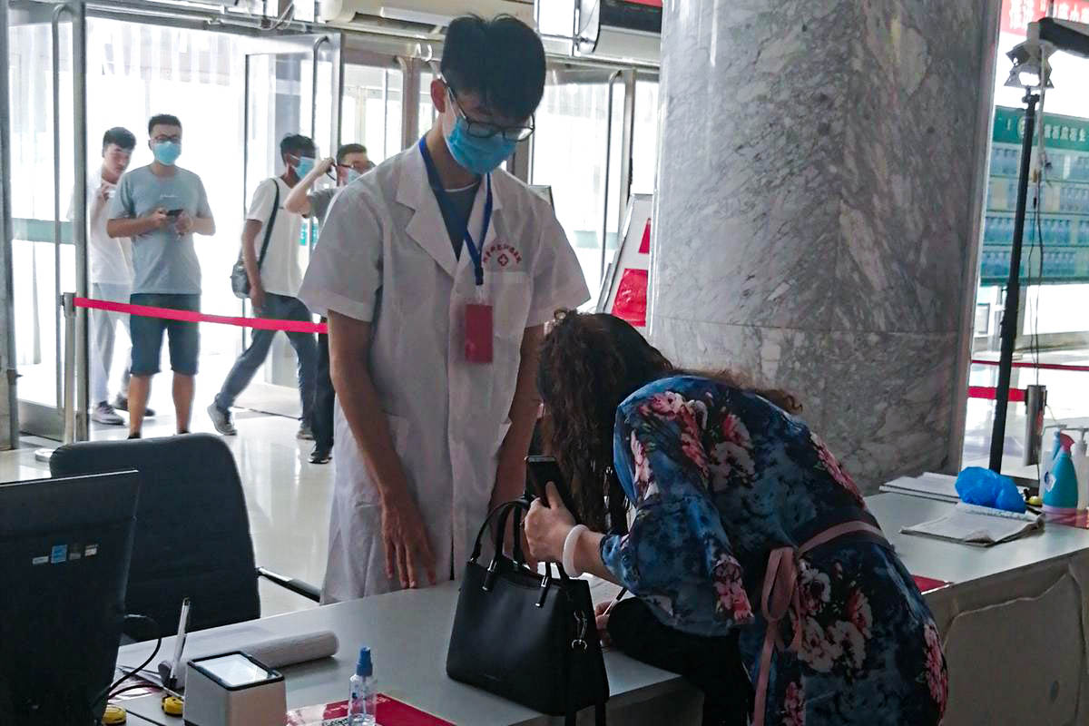 杨大珩的主要任务是:帮助护士查验进院人员的健康码,如无健康码,则进行填表登记记录。医院是人员密集场所,又是疫情防控最后一道防线,流调对预防病毒传播尤其关键。参加流调人员每天24小时工作,实习生参加的是周日白天的正常工作,患者较少,如果正常工作日每天要流调两千多人,只有四到五个工作人员,工作量非常大。杨大珩这次实习的过程中,也遇到了特殊案例,如,老年人眼睛昏花,需要老年人签名后,由杨大珩来帮助填写流调调查表其它内容,也有入院不配合填写人员流调调查表的人员等等。经过医护人员有合理沟通,事情均得到有效的解决。