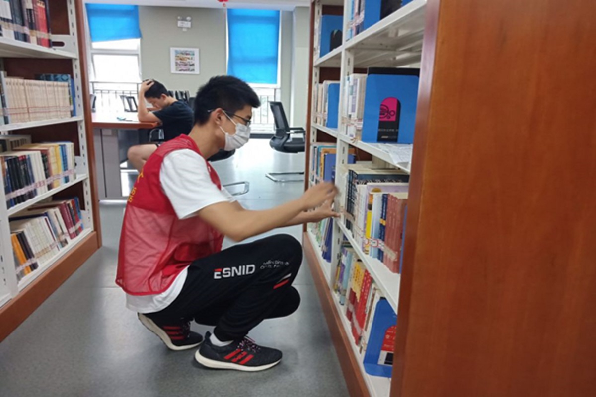 上午,刘传杰提前佩戴好口罩,做好防护措施,在工作人员的带领下进行了体温测量和信息登记。进入图书馆之后,工作人员首先介绍了各个种类书籍的分布区域以及书目的排列规则。工作人员给刘传杰布置的任务主要是发现有放置位置错误的书籍并将其归放到正确的位置。这听起来是一项很轻松的工作,但是其实实施起来却非常麻烦,因为它不仅需要细心,还要有足够的耐心,在工作过程中,刘传杰在发现一本摆错位置的书之后,有时候绕着书架转了好几圈都找不到正确的位置。站起、蹲下,这套动作他做了不下百遍。在经过了一上午的工作之后,刘传杰感觉非常的疲惫,但是一想到阅读者们会因为自己的辛苦而有更舒适的阅读环境,心里不禁感到非常愉悦。