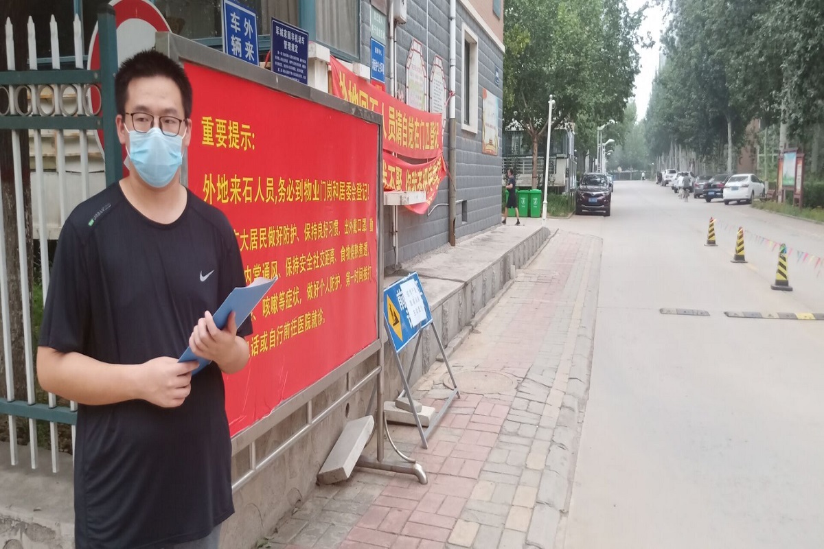 李金帅同学计算在社区附近做一些防疫的宣传和管控。这项工作不仅需要他将每天的行人出入数量记录,而且需要辅助工作人员对出入的行人进行宣传和管理。他说“这里人不多,流动人员则更少,‘出入都要检查,隔天还回不来’便成了该社区当前状态的写照”。