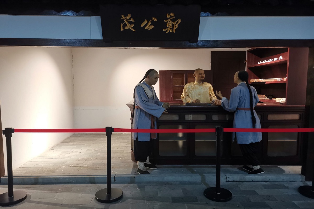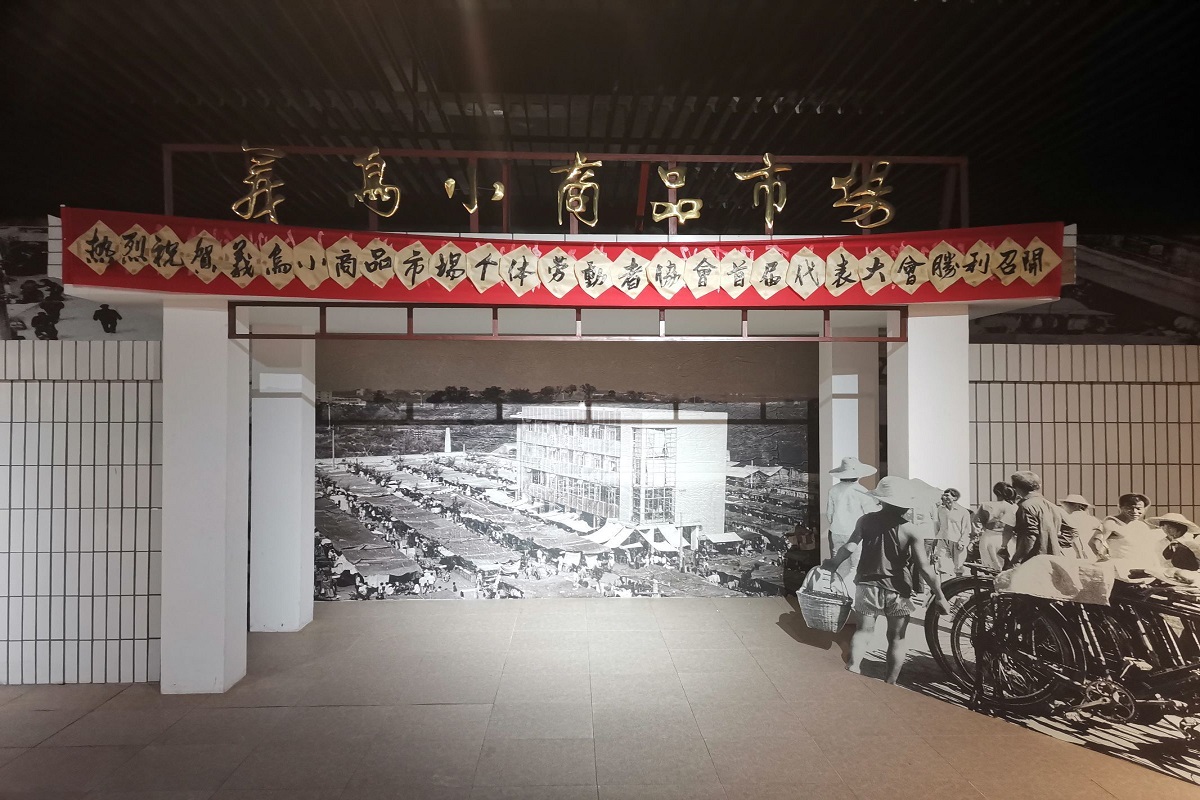 在陈列馆门口的一个大拨浪鼓,向人们说明了小商品城的最开始就是从一个个发出鼓声的拨浪鼓开始的——鸡毛换糖。走进陈列馆后看到的几幅画,就是描述了前辈们走街串巷,以红糖、草纸等物品,换取居民家中的鸡毛等废品以获取微利的场景,这就是是义乌商品经济的萌芽,也是义乌成为“世界超市”的开始。