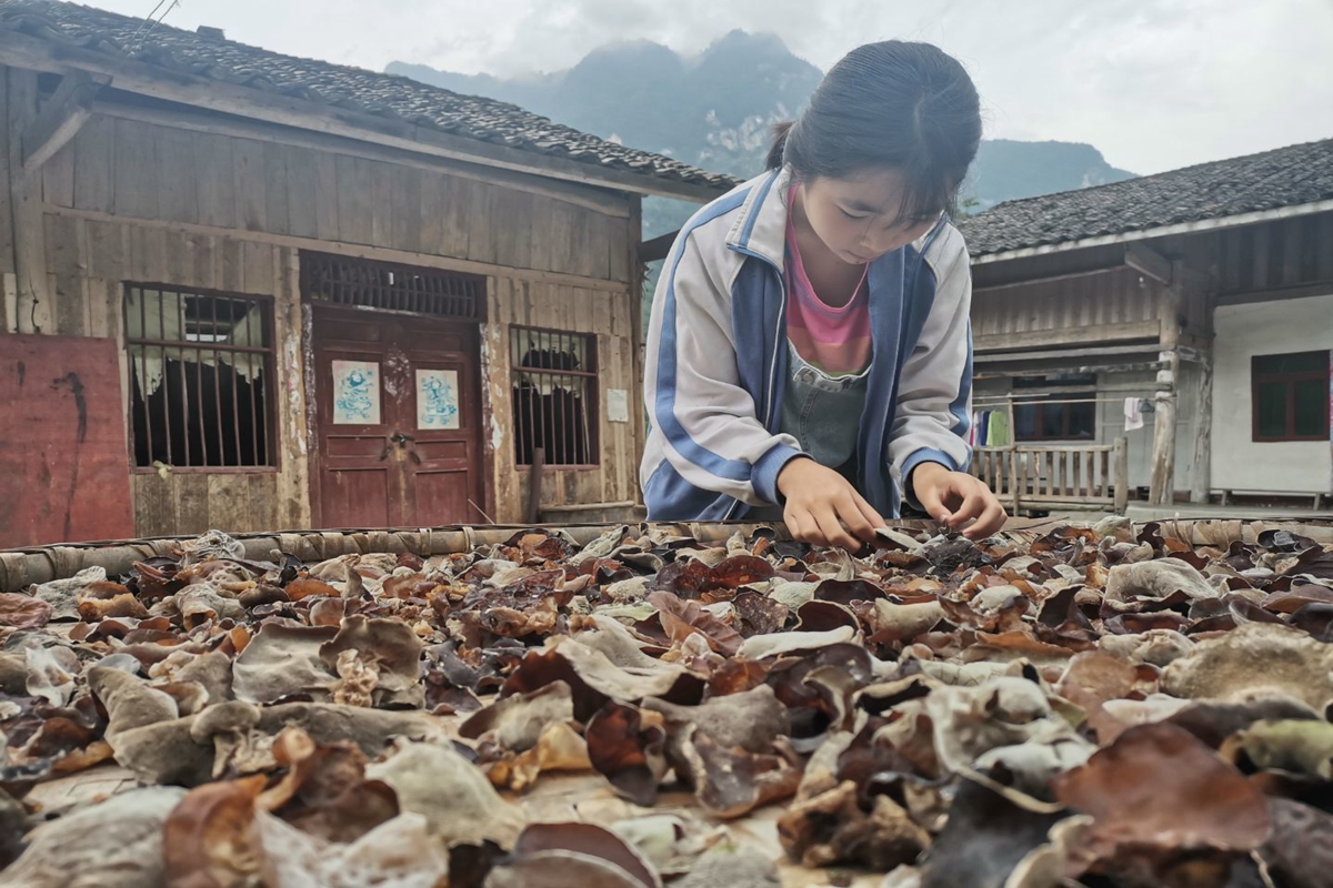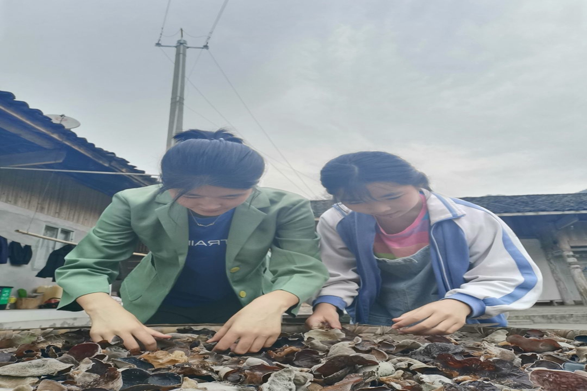 杨佳群则在辅导过程中加入素质拓展环节,用彩笔和画纸让被辅导的小朋友即兴创作,培养他们的发散思维。她还鼓励小朋友们积极参与劳作,带领他们晾晒刚收获的木耳和土豆片,领略农耕生活的美好。