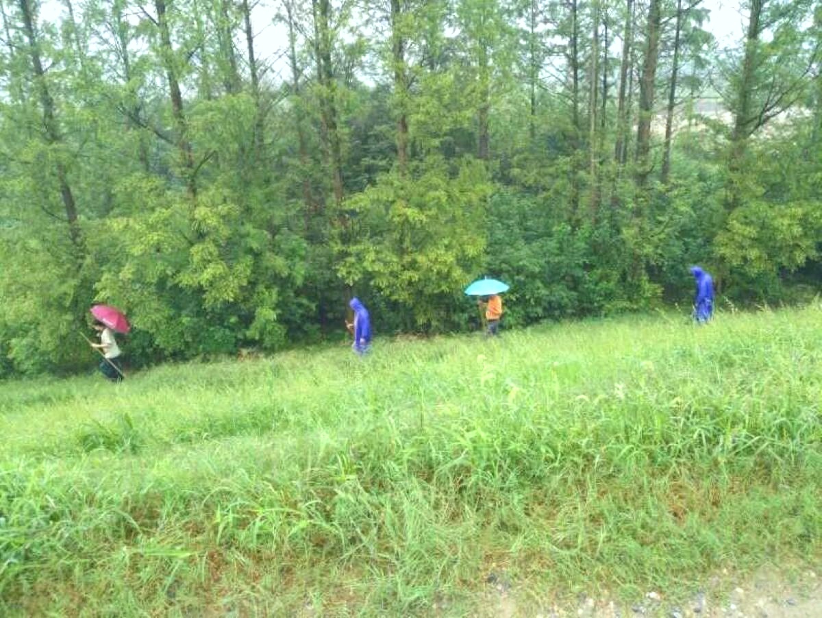 7月24日,团队成员向巡堤人员了解到,当地村民和部分干部以及政府人员积极投身防控工作,每隔一段距离设立一个驻守点,巡视人员24小时轮流巡堤,搜寻浸水处并立即压埋。与此同时据当地村民描述,今年6月底孝感市的府河水位暴涨,孝南区朱湖段南闸水位超出警戒水位1.9米,部分农田大面积被淹没。随后当地干部立即采取应急措施,组织人员准备防汛器材,搭帐篷驻堤防守。当时朱湖府河防守堤段3个社区、23个生产队,以及有防汛任务的企事业单位、孝南区直责任单位和朱湖办事处党员干部群众共300多人,严阵以待,轮流进行巡堤排查。