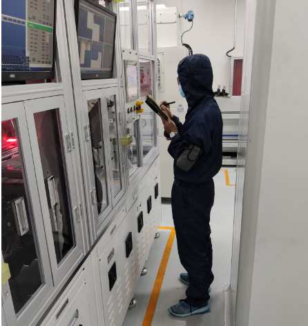 薛浩岩同学被分入设备科实习。由于设备仍处于厂家调试阶段,无法上手体验,所以其主要工作为观摩并咨询厂家设备的调试知识,记录设备问题点和仪保清洁。虽然工作内容简单,但每天数十小时的站立对薛浩岩同学来说仍是不小的挑战。但正是这辛苦的工作,让薛浩岩真正体会到了不同于学校的,真真切切的生活。