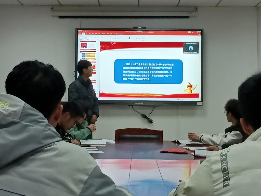 徐洋同志领学习近平总书记在中央党校(国家行政学院)中青年干部培训班开班式上的重要讲话精神。他强调,年轻干部是党和国家事业发展的希望,作为研究生党员,我们必须筑牢理想信念根基,守住拒腐防变防线,树立和践行正确政绩观,练就过硬本领,发扬担当和斗争精神,认真做事、踏实做人,为乡村振兴贡献力量。