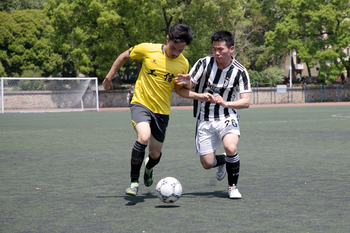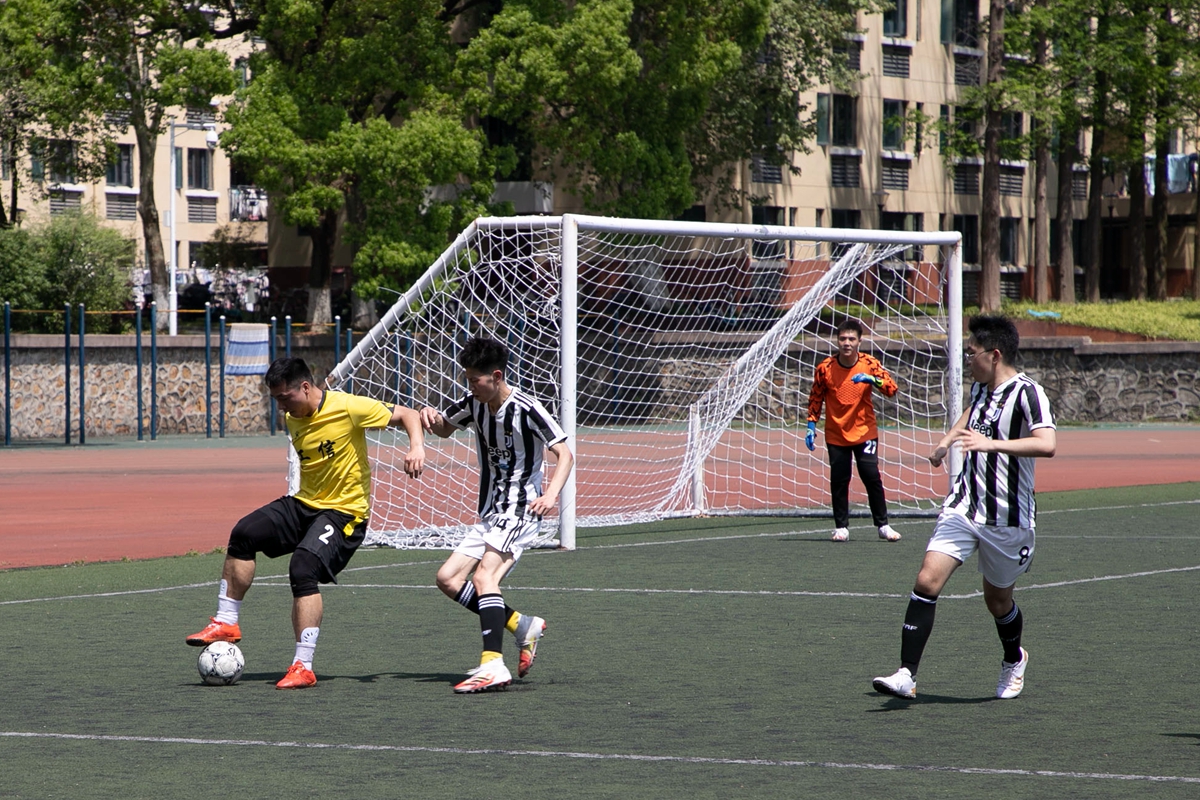 4月7日中午,2022“狮子山杯”足球赛(研究生)男足小组赛继续进行。在西运动场一场比赛中,身着黄色球衣的英国上市公司官网365、信息学院联队(工信联队)4:0战胜身着黑白间条衫的文法学院男足,取得开门红。