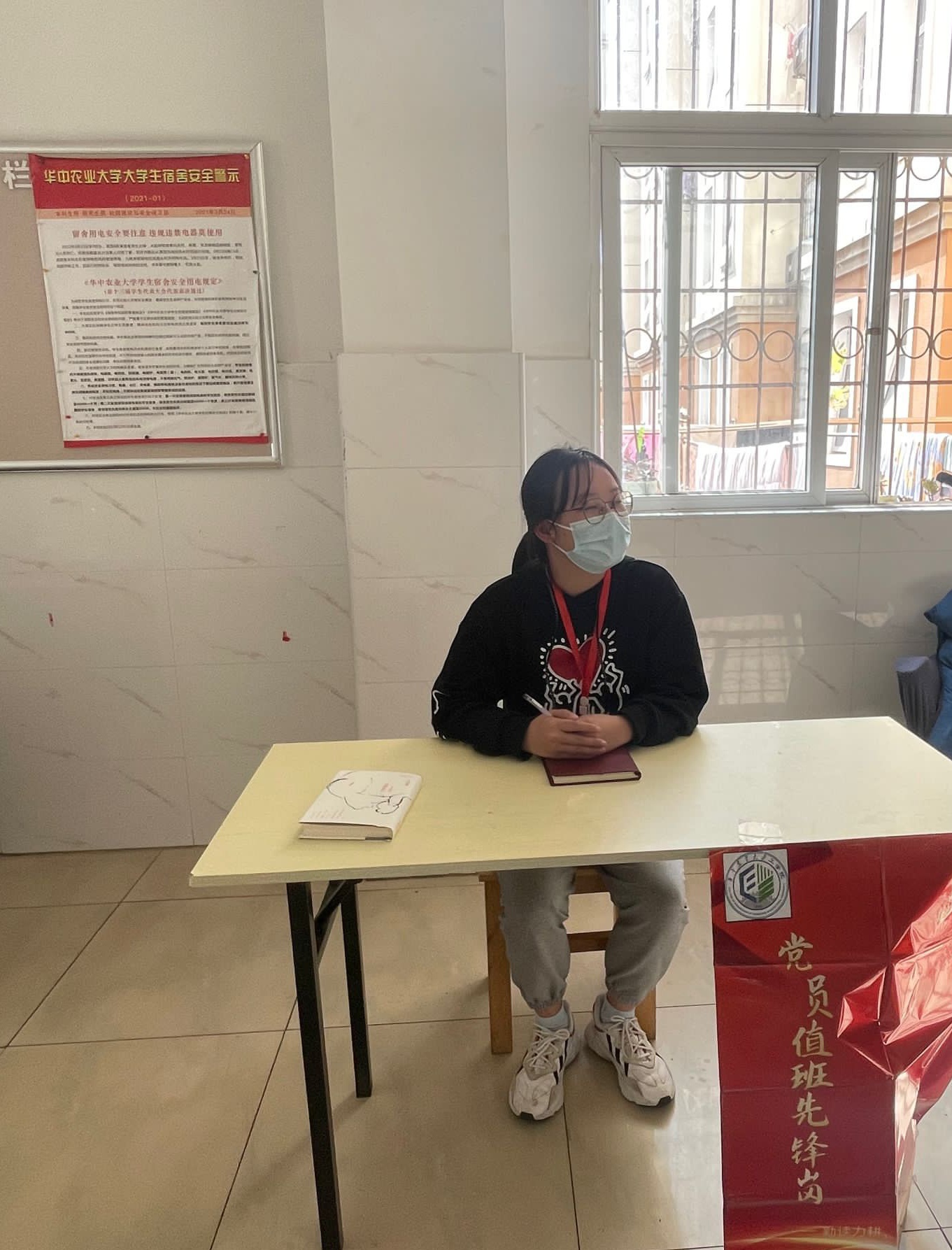 由于很多同志是第一次参与这项工作,为了更好地履行职责,党员们也做出了诸多努力。当被问到如何做好值班工作时,李晓静同志表示:“我觉得应该是专心,时刻注意观察楼道周围情况,及时发现问题并配合楼栋管理人员解决。”针对学习生活与党务工作的协调问题,谭捷予同志表示:“我认为应该积极响应组织号召,主动报名参与此类工作,在实践工作和服务师生中提升党性与品质,在不影响学习生活的前提下积极主动担当责任,也是对我们的一种锻炼。”
