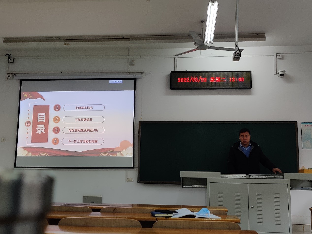 随后,支部书记卜祥利同志对支部近期的工作开展情况和存在问题进行总结分析,并对下一阶段的工作进行部署。他表示,支部工作开展要从政治建设、思想建设、组织建设、作风建设等方面着手。在政治建设方面,能动自动化党支部坚决维护以习近平总书记为核心的党中央权威和集中统一领导,坚决贯彻落实以习近平总书记为核心的党中央做出的决策部署,从而在支部内营造风清气正的良好氛围;在思想建设方面,党支部每月根据上级党委安排,定期举行主题党日活动,由支部党员轮流领学,讲稿、PPT等学习材料提前由支委会审核,既丰富了学习形式也保证了学习内容;在组织建设方面,党支部支委会成员积极发扬团结协作的优良作风,在做好各自分管工作的同时,互相支持配合,全力以赴共谋发展;在作风建设方面,支部党员参与红色主题社会实践,主动担任新生学班下班,积极发挥党员先锋模范作用,始终同广大师生密切联系在一起,融入群众、服务群众。针对支部工作存在的问题,卜祥利提出,要激励党员自主学习,弥补创新理论学习形式方面存在的不足;党支部与对接团支部需要进一步加强联系,定期安排党员下沉团支部参加各项活动,同时,支部党员对于主动完成工作的积极性有待进一步提升;支部应根据实际情况不断更新工作方式方法,学习优秀党支部的党员教育管理工作经验。最后,卜祥利表示,在今后的支部工作中,将严格按照上级党委要求,一如既往地凝心聚力抓党建、促发展,推动党建工作创新争优,提升党建工作水平,切实发挥党的基层组织的战斗堡垒作用。