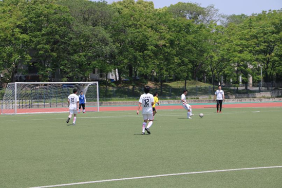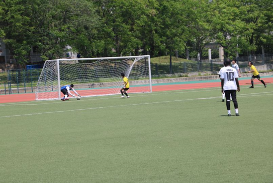 比赛开始后,工信队用强势的进攻企图瓦解水产队的防线,比赛开始第13分钟,工信队右路突破,5号Salem控球后,直传给21号张毅,右脚直接射门,被水产队门将拦截。第25分钟水产队9号何宏港获得机会远射,力小,偏于球门。第38分钟,工信队29号李宇恒禁区外远射,力量不足,17号董昭试图补射,但水产队门将先一步将球抱住。上半场,双方你来我往,互有攻势,赛况焦灼,最后0:0结束上半场比赛。