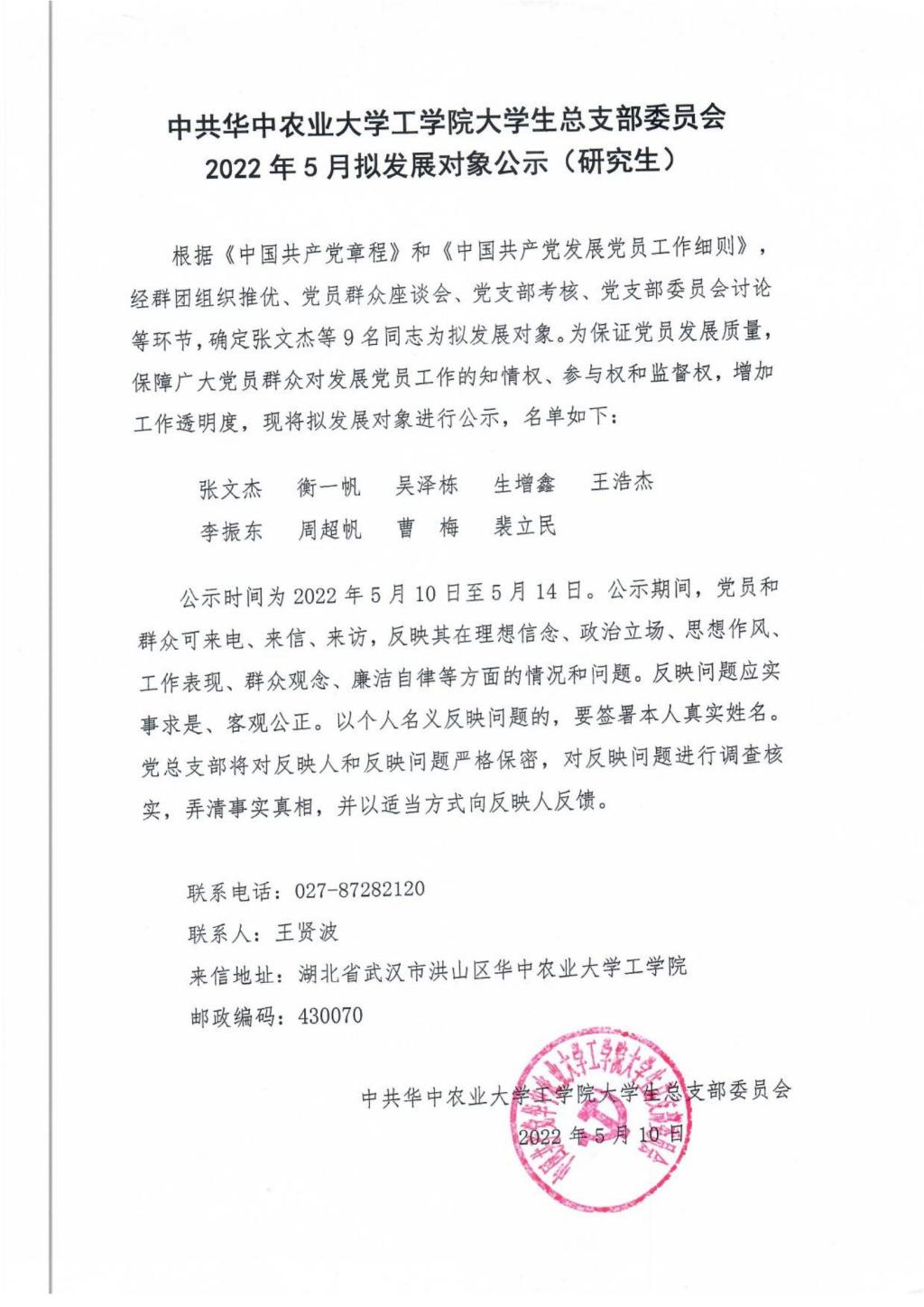 【研】中共英国上市公司官网365大学生总支部委员会2022年5月拟发展对象公示(研究生)