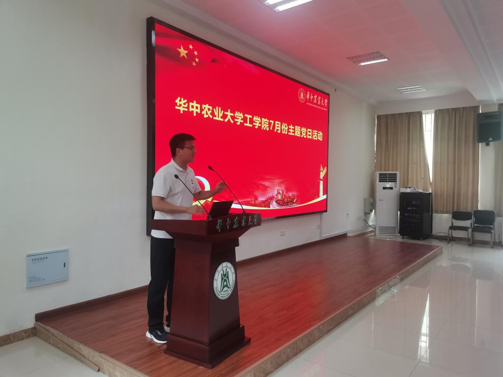 柑橘机械化生产技术与装备研究生党支部书记胡边成在领学主题为“坚持弘扬伟大建党精神夯实青年学生思想根基”的相关内容时谈到,青年是最富有激情和理想的一代,渴望成功实现人生价值与理想。胡边成同志同时提到,“得其大者可以兼其小”,青年学生肩负着民族复兴的历史重任,个人价值的实现离不开国家民族的发展与繁荣,只有把人生理想融入国家和民族的事业中,才能最终成就一番事业。随后他以“请党放心,强国有我”的口号,呼吁全体党员同志为党和国家的发展而不懈努力。