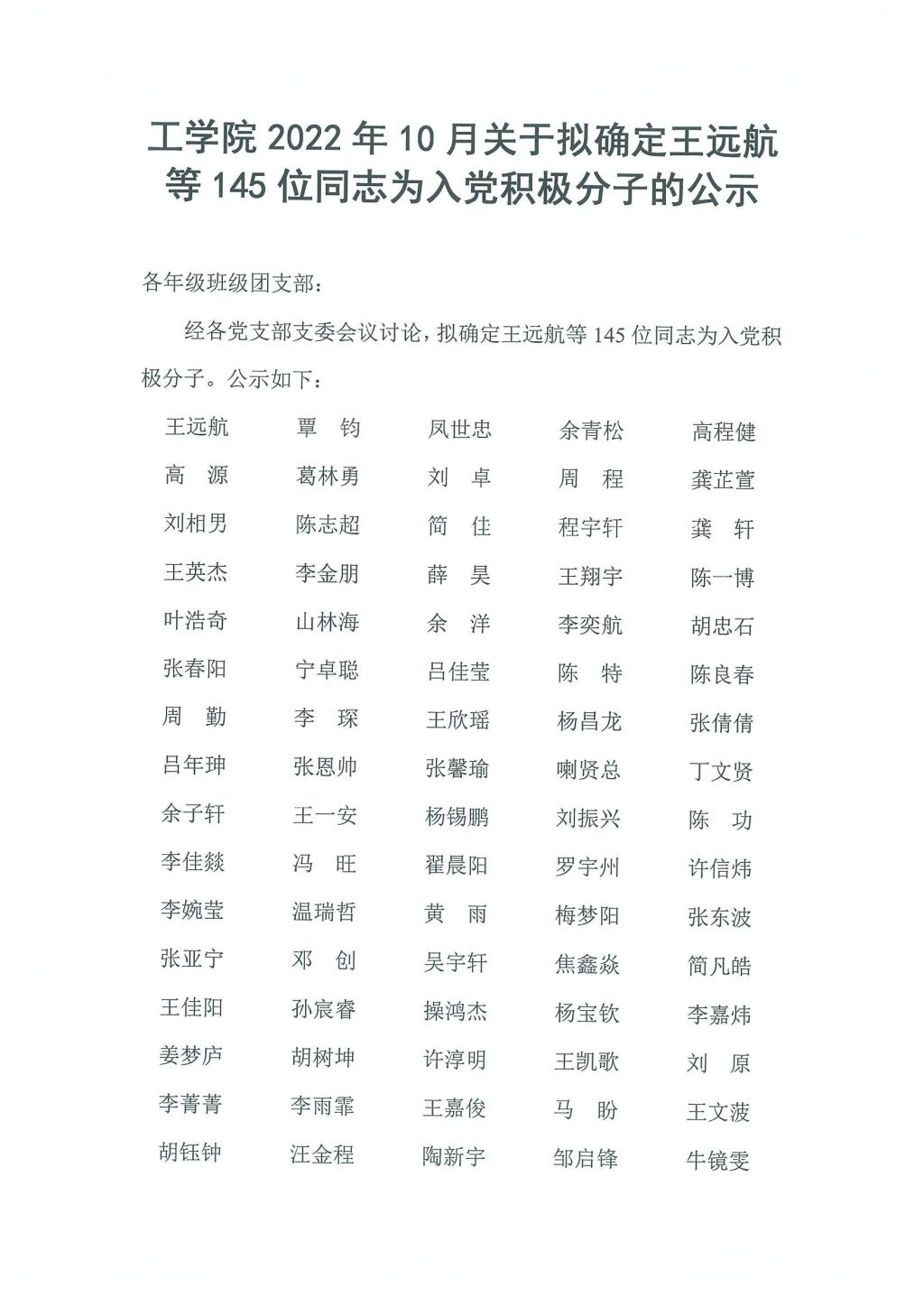 英国上市公司官网3652022年10月关于拟推荐王远航等145位同志为入党积极分子的公示