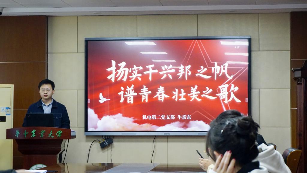 各党支部代表结合均党的二十大精神学习体会与自己的学习成长经历进行了分享。机电第二党支部代表牛彦东结合自己深入基层开展扶贫工作、进行党史学习社会实践等经历,生动向评委展示了自己如何将个人成长与理论实践有机结合。放眼未来,他更是说到,“要把国家的忧愁当作自己的忧愁,将个人发展同国家和民族的前途命运紧密联系在一起。”从受教者到支教者、从疫情被保护者到主动出击者,机制第一党支部曲靖澜从自己人生路上身份的转变讲起,简述了自己如何用行动助力乡村教育,用行动践行党员担当。自动化本科生党支部吴诚秋则表示“为了弘扬伟大建党精神,我们应当坚持真理、坚守理想,只要理想之光不灭,信念之光就不会灭。”其它代表也均结合主题进行了精彩演讲,最终,牛彦东获本次大赛一等奖,曲靖澜获二等奖,吴诚秋获三等奖、尤礼浙和谷永政获优秀奖。
