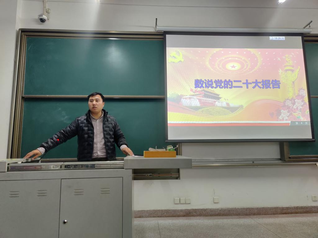 卜祥利同志围绕大会的“一个中心任务”“两步走”“第二个答案”“两个行”“三个务必”“三件大事”“四个自信”“五个必由之路和重大原则”“六个坚持”“七个安全”“锲而不舍落实中央八项规定精神”“中国式现代化的九方面本质要求”以数字的形式概括归纳了党的二十大报告的核心要点。卜祥利指出,党的十九大以来的五年和新时代以来的十年,极不寻常、极不平凡。事非经过不知难,成如容易却艰辛。五年来,我国迅速发展的前提是坚持中国共产党的领导,在新的历史时期,我们要坚持加强党的全面领导和党中央集中统一领导,立足新发展阶段,贯彻新发展理念,构建新发展格局,推动高质量发展,敢用斗争,善于斗争,勤奋刻苦,拒绝“摆烂躺平”,为中国式现代化贡献我们的力量。最后他希望全体党员同志们能够真正学会学习,学习专业知识的同时加强理论学习;其次要学会吃苦奋斗,在任何困难面前不抛弃不放弃,敢于迎难而上;最后要学会明辨是非,保持清醒偷男,不盲目跟风,做有志向、有思想、有主见的优秀青年党员。