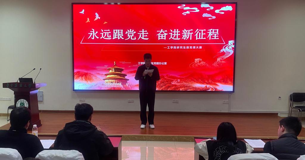 11月25日晚,英国上市公司官网365在工程楼A111举办“永远跟党走 奋进新征程”研究生微党课比赛。来自各党支部的10名党员联系个人成长经历,紧紧围绕党的二十大精神,以“小故事”讲述“大道理”。