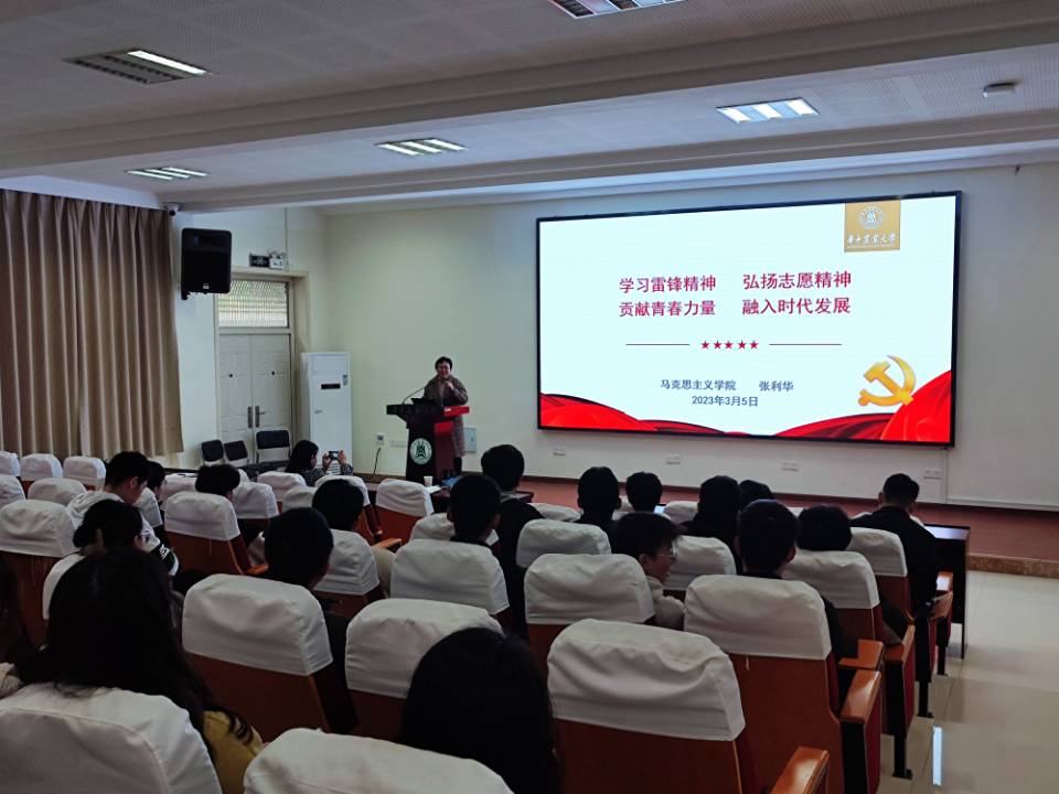 3月5日正值学雷锋纪念日,张利华以“学习雷锋精神,弘扬志愿精神;贡献青春力量,融入时代发展”为主题,从雷锋精神的时代价值、中国青年志愿者行动的发展历程、大力弘扬志愿服务精神等三个方面为同学们讲述雷锋事迹,分享志愿服务故事。她谈到,无论时代如何变迁,雷锋精神永不过时,我们要学习雷锋同志热爱党、热爱祖国、热爱社会主义崇高理想和坚定信念;服务人民、助人为乐的奉献精神;干一行爱一行、专一行精一行的敬业精神;锐意进取、自强不息的创新精神;艰苦奋斗、勤俭节约的创业精神;并把雷锋精神代代传承下去。她讲述了校友、“感动中国”年度人物徐本禹和鞠彬彬的志愿服务故事并谈到,我们要跟随优秀校友们的步伐,将“奉献、友爱、互助、进步”的志愿服务精神传递给更多的同学。