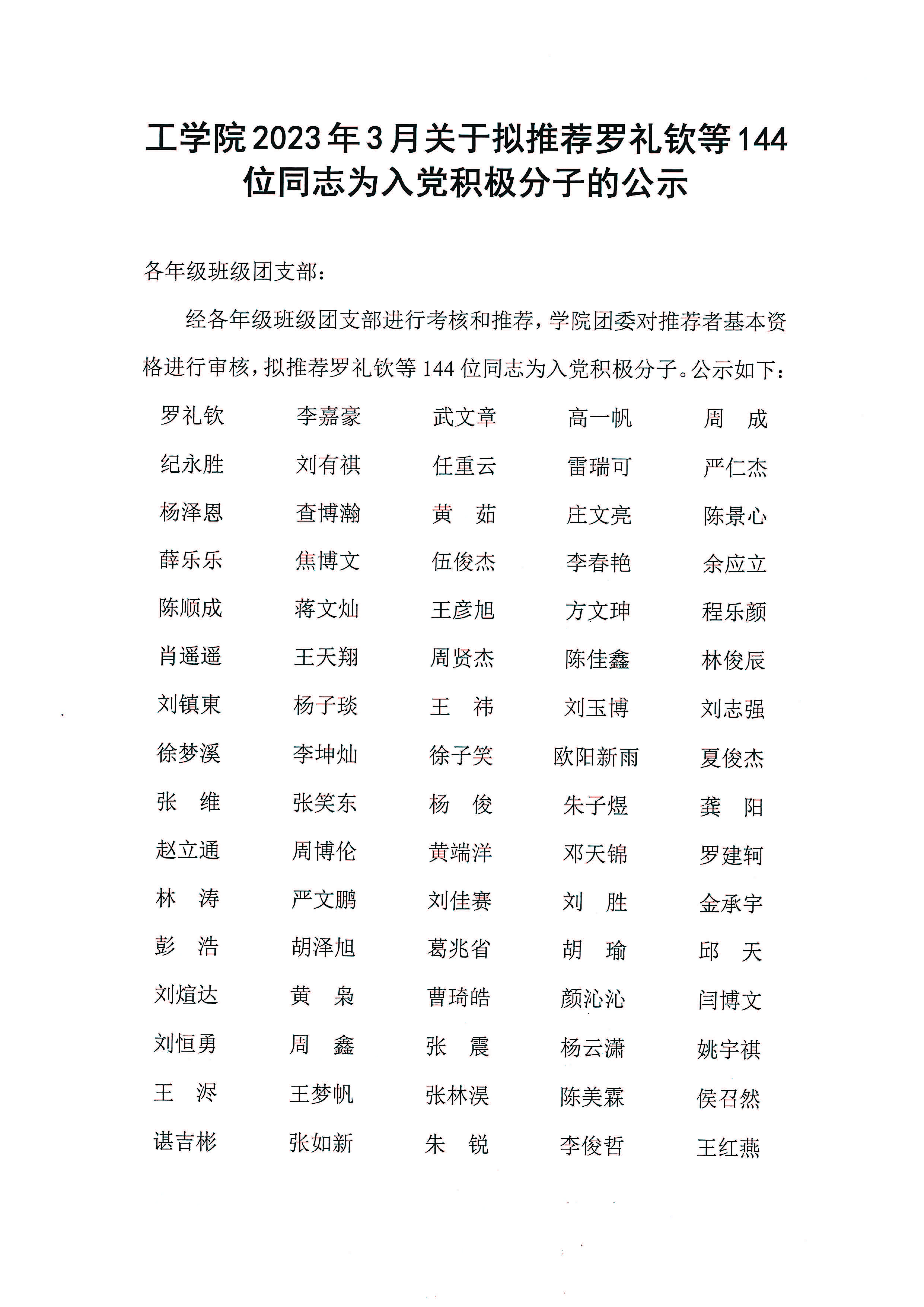 英国上市公司官网3652023年3月关于拟推荐罗礼钦等144名同志为入党积极分子的公示